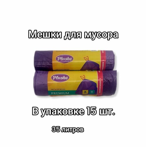 Мешки для мусора 35 литров 15 штук с завязками 2 упаковки