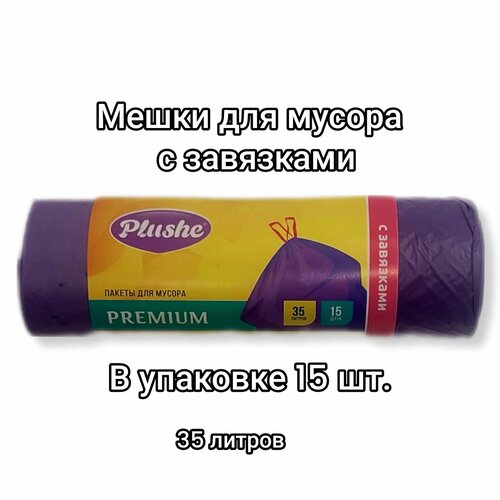 Мешки для мусора 35 литров 15 штук с завязками 1 упаковка
