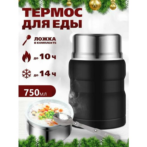 Термос Крышка-чашка, Вакуумный PlusUltra "без ситечка", 0.75 л, Черный