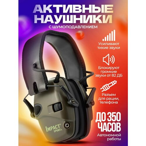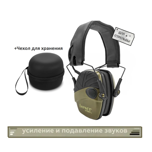 Наушники активные для стрельбы Impact Sport, тактические, +Чехол в подарок ( цвет хаки), под шлем Mr "Howard"