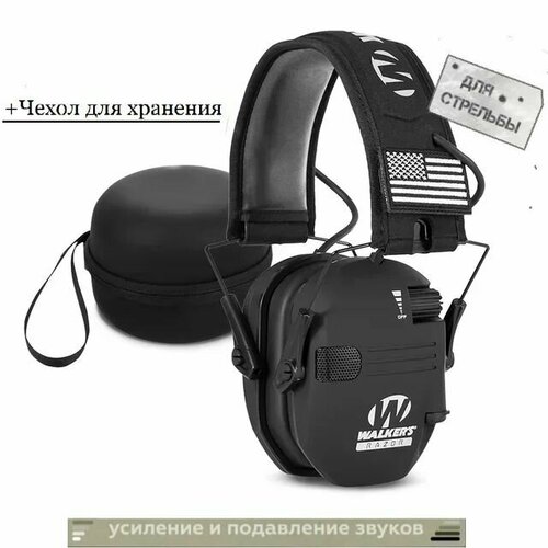 Наушники активные для стрельбы Walker's Razor, тактические, +Чехол в подарок ( цвет черный )
