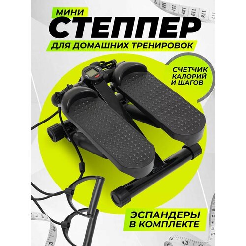 Мини - степпер PLUS ULTRA с эспандерами для дома / Кардио тренажёр для похудения с электронным дисплеем