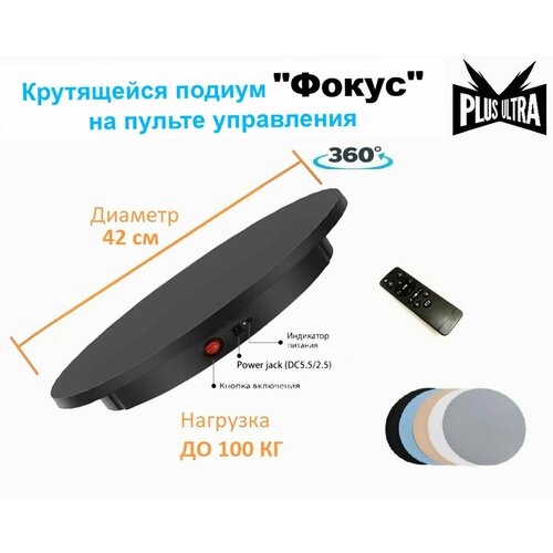 Стол для фотосъемки "Plus Ultra" вращающийся на пульте управления, 42см диаметр, до 100кг / Подставка крутящаяся для фотосъемки товаров, черный