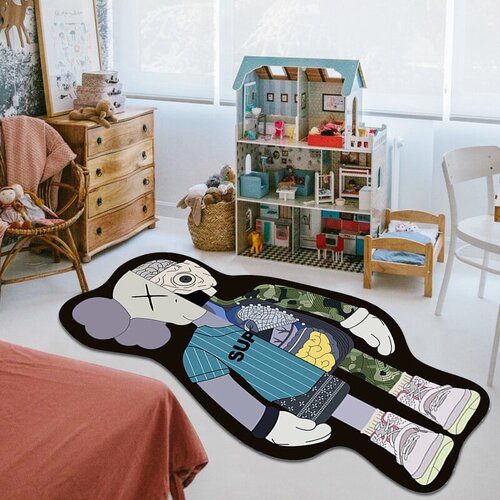Ковер безворсовый KAWS Companion/Кавс3 90x180см. Коврик универсальный, в спальню, в гостиную, противоскользящий