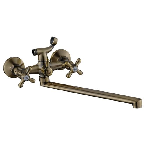 Смеситель для ванны с душем латунь с длинным изливом золото