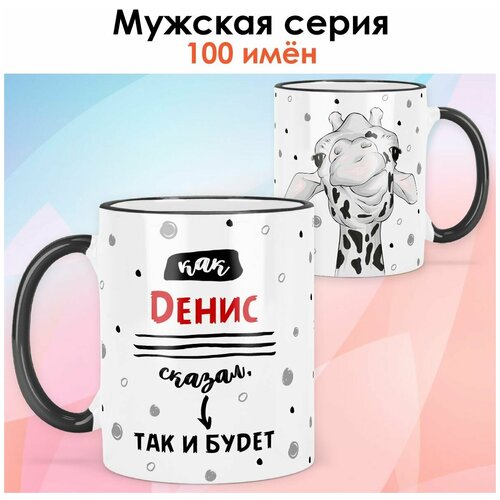 Кружка print LOOK с именем Денис "Как сказал, так и будет" Мужская серия - чёрная ручка и ободок