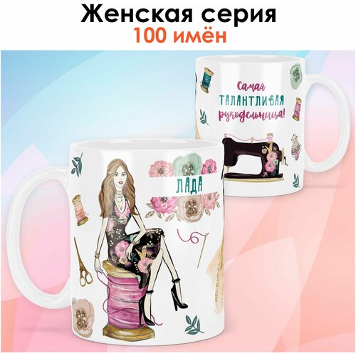 Кружка print LOOK с именем Лада "Рукодельница. Блондинка" Швея, мастерица, Женская серия - белая основа