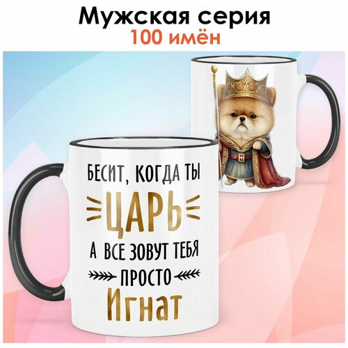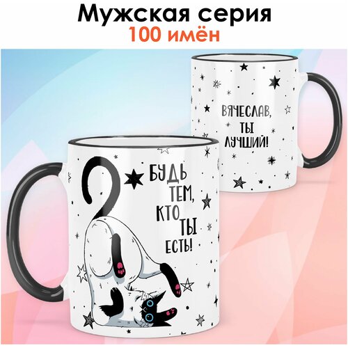Кружка print LOOK с именем Вячеслав "Будь тем, кто ты есть" Мужская серия - чёрная ручка и ободок