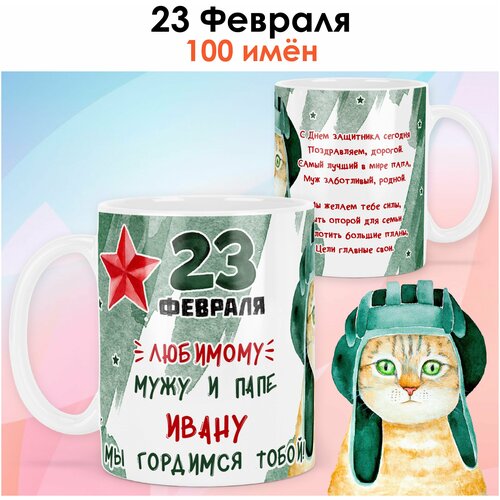 Кружка print LOOK с именем Иван "Наш Защитник" 23 Февраля Мужская - белая основа