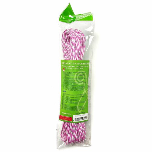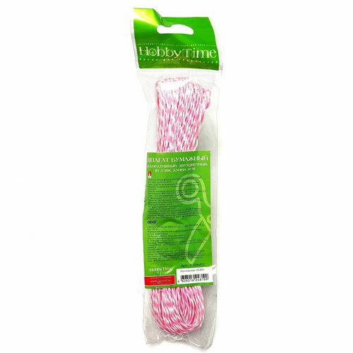 Шпагат Бумажный, Декоративный для украшения 1,5 ММ x 30 М, цвет розовый / белый, Бруно Висконти BrunoVisconti
