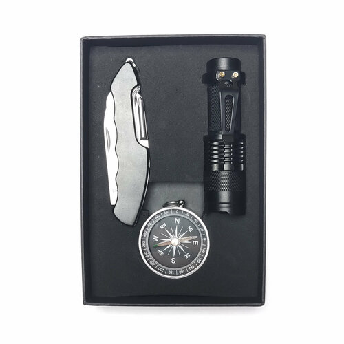 Подарочный набор Travel, 3 предмета, швейцарский нож, фонарь, компас.