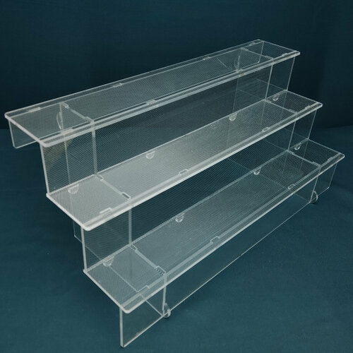 Стеллаж, выставочная витрина/ Полка для товара из оргстекла магазинная 38x17.2x16 см, 3 ступени