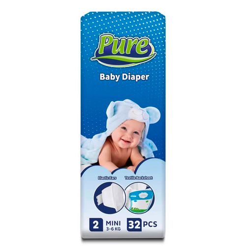 Детские подгузники PURE MINI № 2 (3-6 кг) 32шт/упак (5 pack/bale)