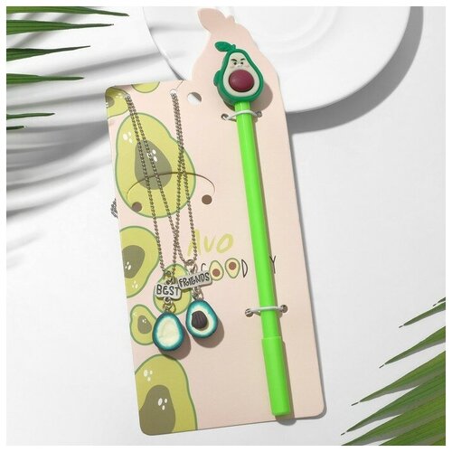 Набор 3 предмета: 2 кулона, ручка "Неразлучники" авокадо, цвет зелёный, 44см (комплект из 5 шт)