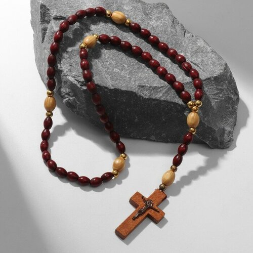 Чётки деревянные "Православные" 50 бусин через шарик, с крестиком, цвет тёмно-коричневый