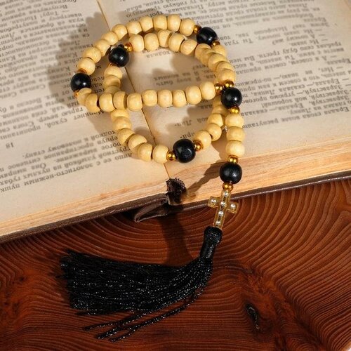 Queen fair Чётки деревянные "Православные" 50 бусин с крестиком, цвет бежево-чёрный