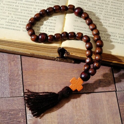 Чётки деревянные "Православные" с крестиком, кисть, 30 бусин, цвет коричневый