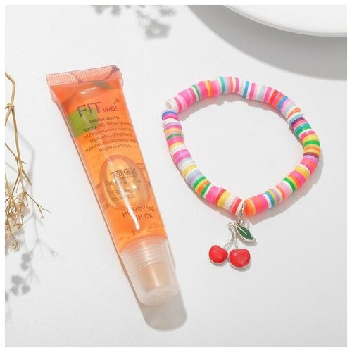 Queen fair Набор 2 предмета: браслет, блеск для губ "Фрукты" вишенка, цветной