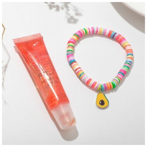 Queen fair Набор 2 предмета: браслет, блеск для губ "Фрукты с пузырьками" персик