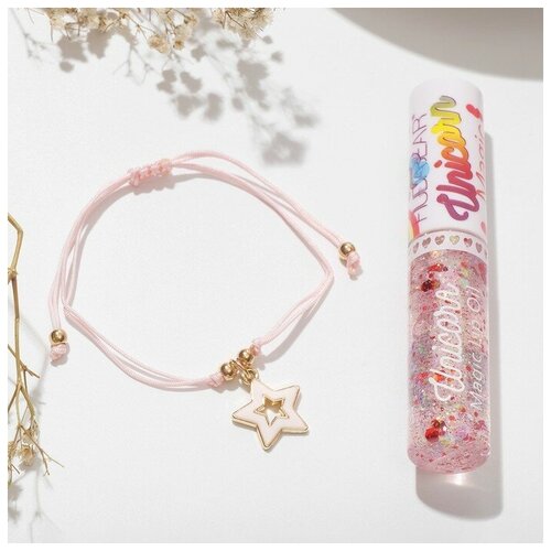 Queen fair Набор 2 предмета: браслет, блеск для губ "Единорог" звезда, цвет розовый