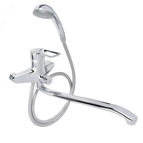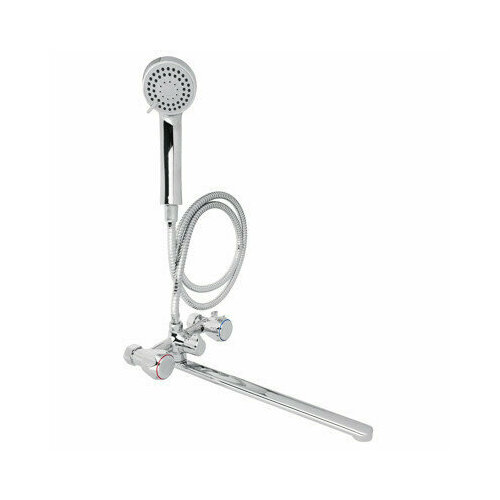 RAIN 561-311 Уран, Смеситель для ванны, прямой излив 35см, керамические кран-буксы 1/2, душевой набор, латунь, хром