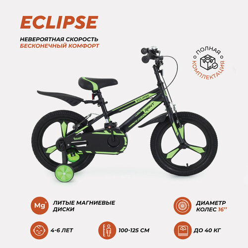 Велосипед двухколесный детский RANT "Eclipse" черно-зеленый 16"
