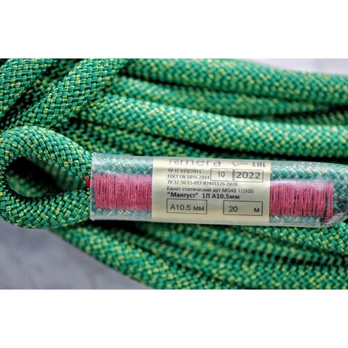 Верёвка страховочно-спасательная Мангуст с коушами | 10.5 мм | 1 коуш | Remera (200 м, Зелёный)