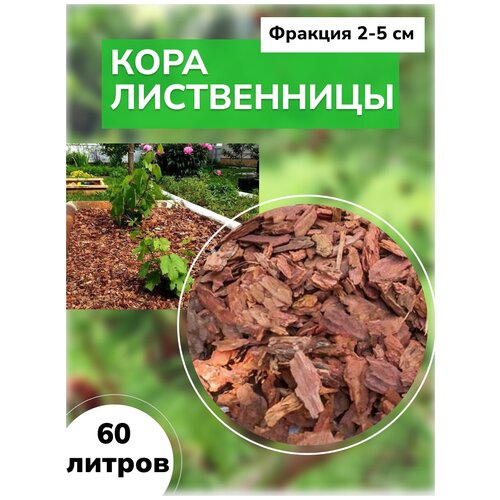 Кора лиственницы, мульча для сада растений, щепа декоративная, удобрения для грунта Rendax фракция 2-5 см 60 л