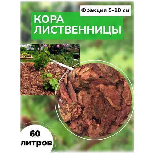 Кора лиственницы, мульча для сада растений, щепа декоративная, удобрения для грунта Rendax фракция 5-10 см 60 л