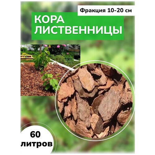 Кора лиственницы, мульча для сада растений, щепа декоративная, удобрения для грунта Rendax фракция 10-20 см 60 л