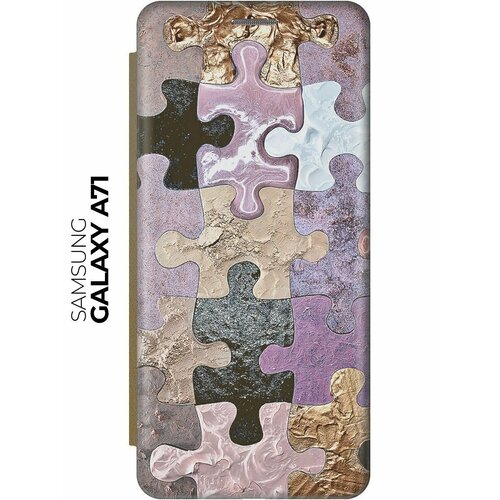 Чехол-книжка Розовый пазл на Samsung Galaxy A71 / Самсунг А71 золотой