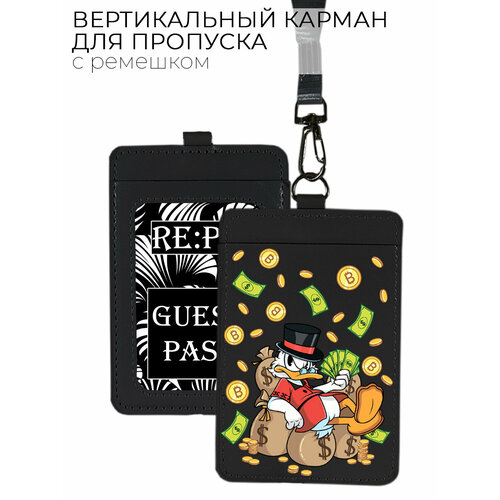 Чехол (бейдж) для пропуска и карт на ленте с принтом "Богатенький скрудж" черный