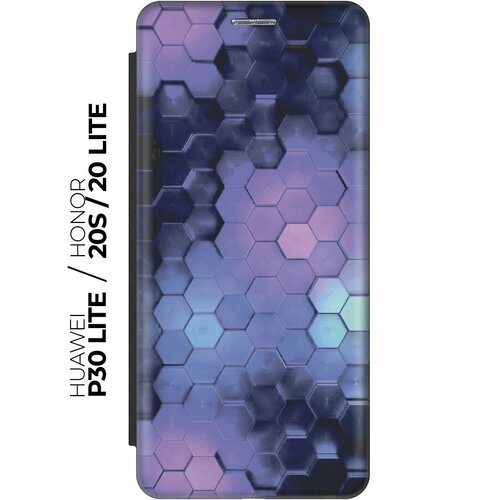 Чехол-книжка Сиреневые соты на Honor 20 Lite / 20s / Huawei P30 Lite / Хуавей П30 Лайт / Хонор 20 Лайт / 20s черный