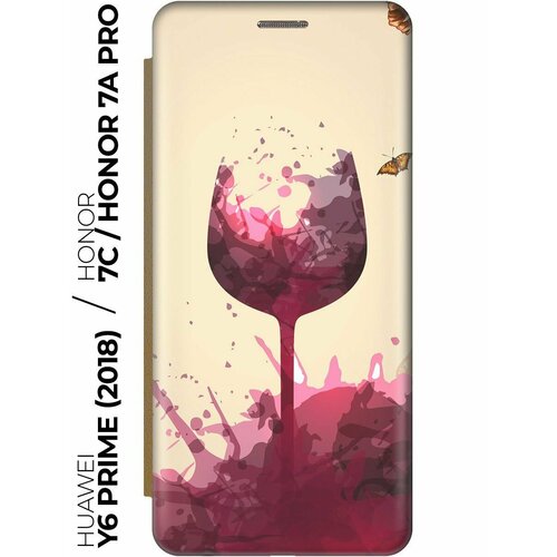 Чехол-книжка Летнее вино на Honor 7C / 7A Pro / Huawei Y6 Prime (2018) / Хуавей У6 Прайм 2018 / Хонор 7А Про / 7С золотой