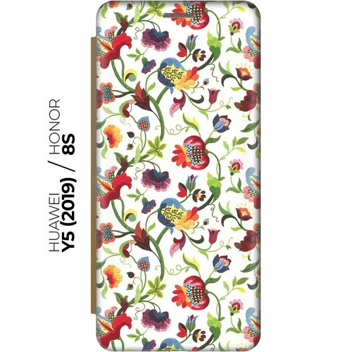 Чехол-книжка Цветочный узор на Honor 8S / Huawei Y5 (2019) / Хуавей У5 2019 / Хонор 8с золотой