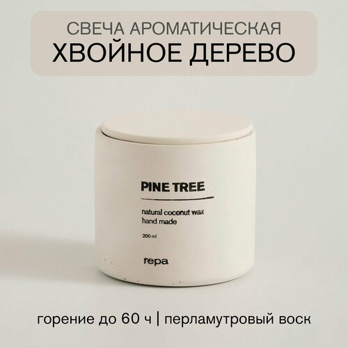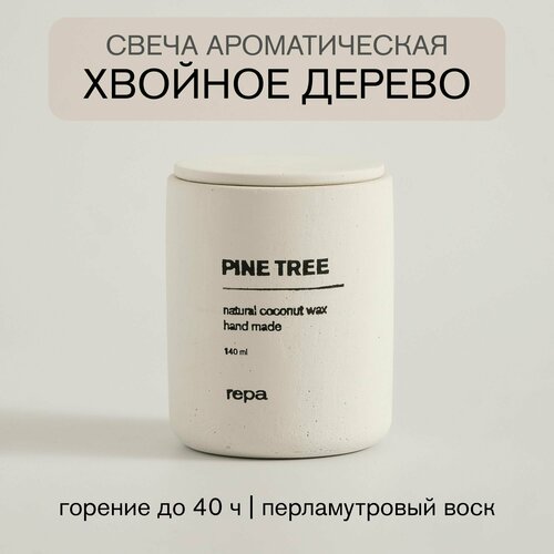 Свеча ароматическая с крышкой repa home decor "Хвойное Дерево" - Кокосовая свеча в стакане из гипса с хлопковым фитилём, 30 часов горения, 8,2 см х 6,5 см