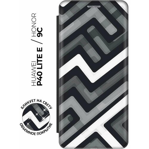 Чехол-книжка Черно-белые зигзаги на Honor 9C / Huawei P40 Lite E / Хуавей П40 Лайт Е / Хонор 9С с эффектом блика черный