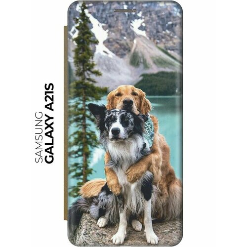 Чехол-книжка Собачья дружба на Samsung Galaxy A21s / Самсунг А21с золотой