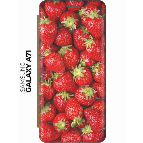 Чехол-книжка Клубника на Samsung Galaxy A71 / Самсунг А71 золотой