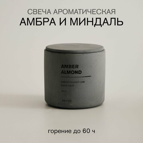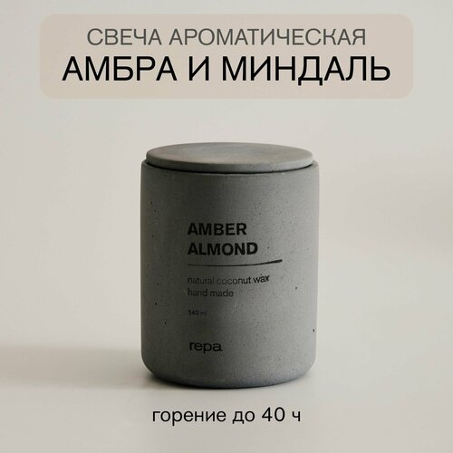 Свеча ароматическая с крышкой repa home decor "Амбра и Миндаль" - Кокосовая свеча в стакане из гипса с хлопковым фитилём, 40 часов горения, 7,5 см х 7,8 см