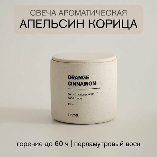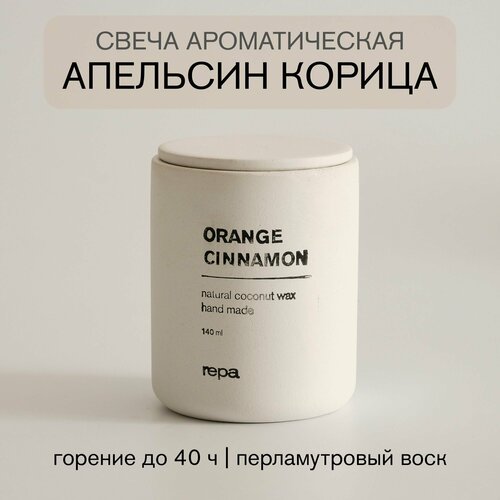 Свеча ароматическая с крышкой repa home decor "Апельсин Корица - Кокосовая свеча" в стакане из гипса с хлопковым фитилём, 30 часов горения, 8,2 см х 6,5 см