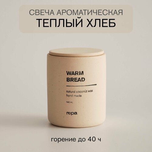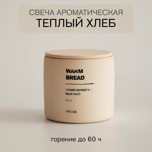 Свеча ароматическая с крышкой repa home decor "Тёплый Хлеб" - Кокосовая свеча в стакане из гипса с хлопковым фитилём, 30 часов горения, 8,2 см х 6,5 см