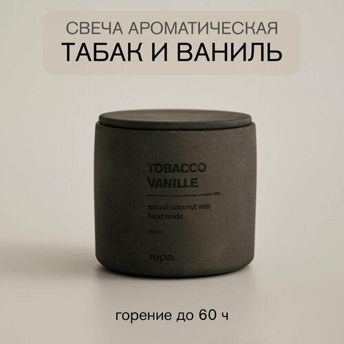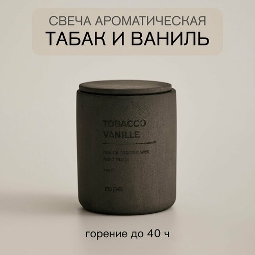 Свеча ароматическая с крышкой repa home decor "Табак и Ваниль - Кокосовая свеча" в стакане из гипса с хлопковым фитилём, 30 часов горения, 8,2 см х 6,5 см