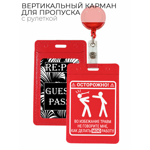 Чехол (бейдж) для пропуска и карт на рулетке с принтом "Attention! W"
