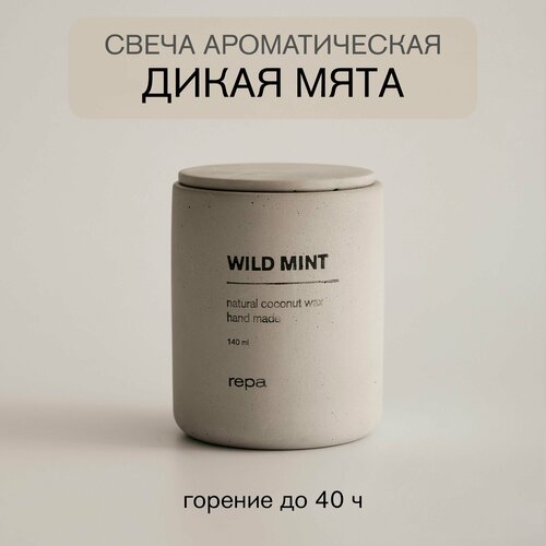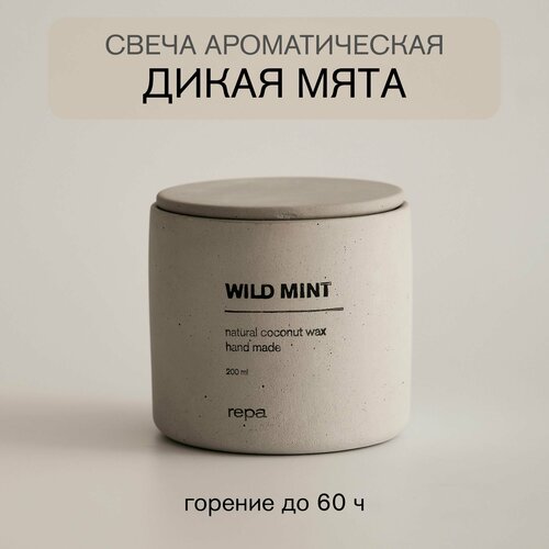 Свеча ароматическая с крышкой repa home decor "Дикая Мята" - Кокосовая свеча в стакане из гипса с хлопковым фитилём, 40 часов горения, 7,5 см х 7,8 см