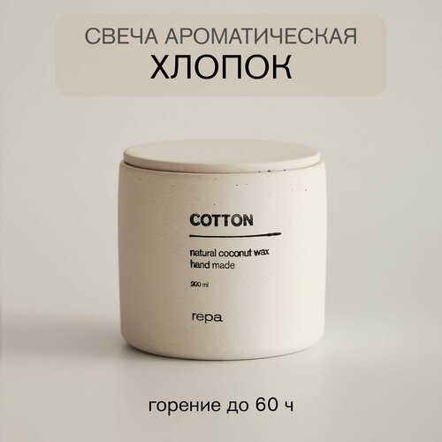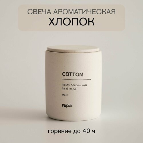 Свеча ароматическая с крышкой repa home decor "Хлопок" - Кокосовая свеча в стакане из гипса с хлопковым фитилём, 40 часов горения, 7,5 см х 7,8 см