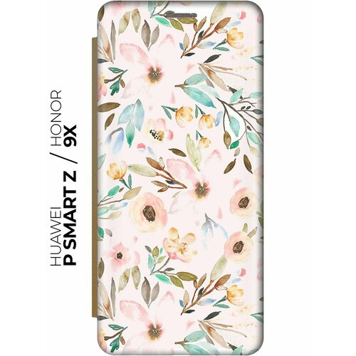 Чехол-книжка Розовая нежность на Honor 9X / 9X Premium / Huawei P Smart Z / Y9 Prime (2019) / Хуавей П Смарт Зет / У9 Прайм (2019) / Хонор 9Х золотой