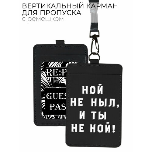 Чехол (бейдж) для пропуска и карт на ленте с принтом "Ной не ныл и ты не ной!" черный