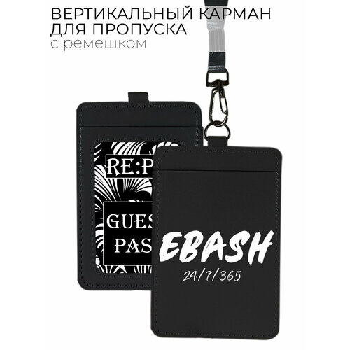 Чехол (бейдж) для пропуска и карт на ленте с принтом "Вкалывай 365/24/7" черный