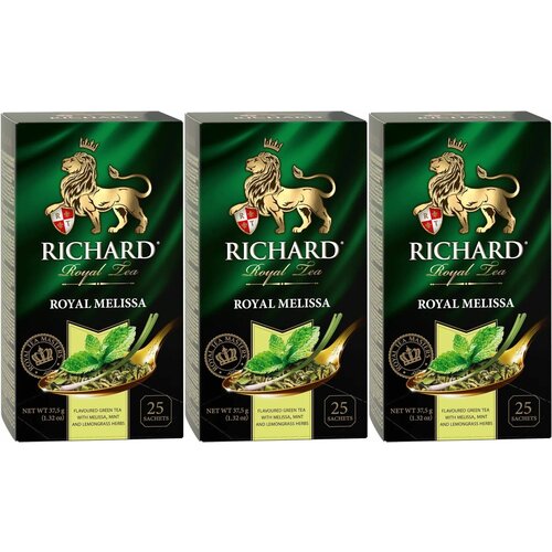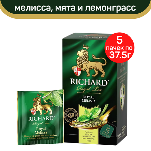 Чай зеленый Richard Royal Melissa, с мелиссой и лемонграссом, 5 упаковок по 25 пакетиков